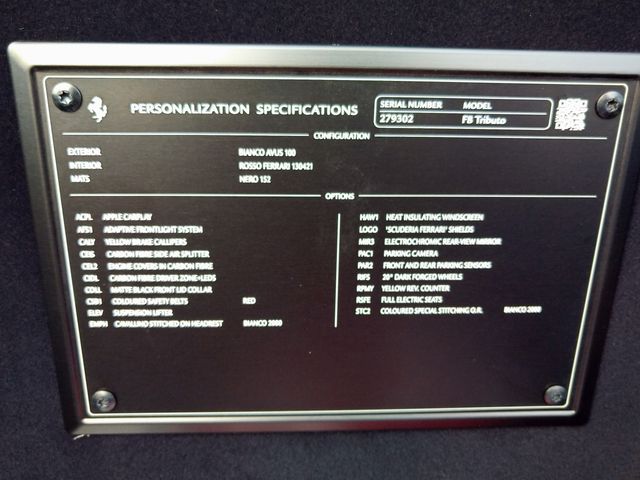 Finished in a striking white color, this Ferrari F8 Tributo comes equipped with a variety of desirable features, including air conditioning, airbags, leather seats, a back camera, and a smart key system. The vehicle's impressive specifications and luxurious appointments make it a prime choice for those seeking a premium driving experience.