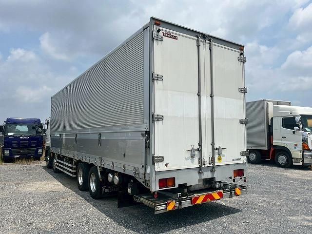 Introducing the 2025 HINO PROFIA, a robust and reliable vehicle designed for heavy-duty applications. This model is known for its durability and efficiency, making it an excellent choice for commercial use and transportation needs. With its four-door configuration, the PROFIA provides ample access for both drivers and passengers, ensuring practicality in various business scenarios. Powered by a 12,910 cc diesel engine paired with an automatic transmission, this vehicle offers a strong performance suited for demanding driving conditions. The design focuses on efficiency and power, making it ideal for city driving and long-distance hauling alike. The combination of advanced engineering and reliable powertrain ensures that the HINO PROFIA can handle a variety of tasks with ease. This particular unit comes in a clean white color and has a mileage of 1,140,663 kilometers, indicating its extensive use in a professional capacity. The vehicle features amenities such as air conditioning and airbags, enhancing comfort and safety for its occupants. With advanced features like a back camera, it offers improved visibility and assistance while navigating tight spaces.